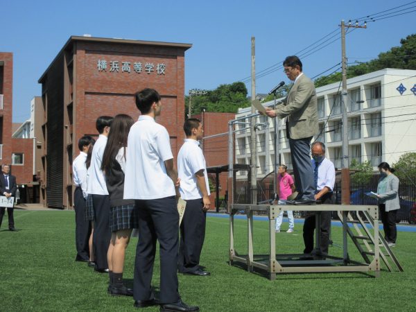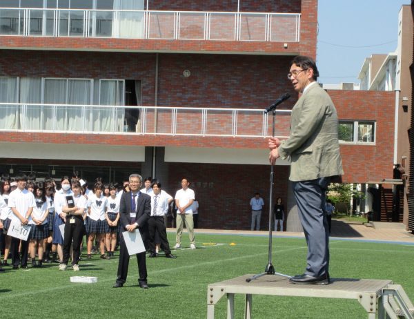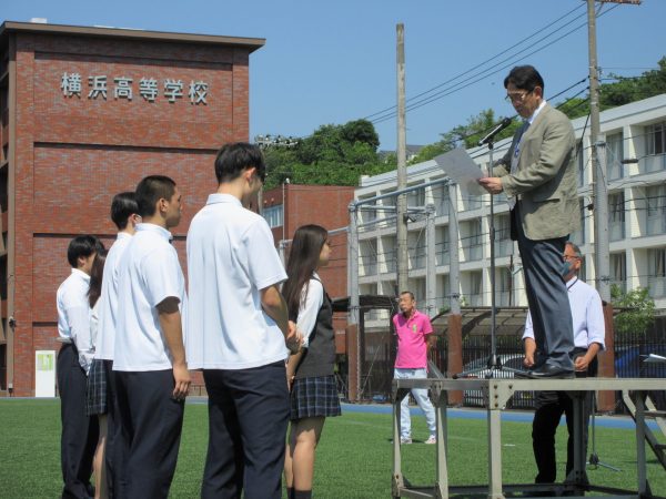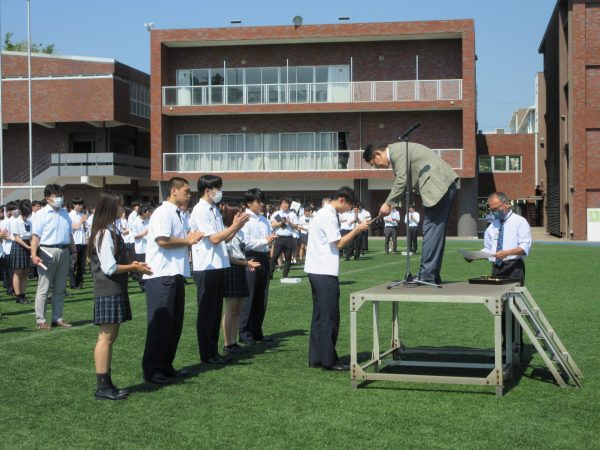 6月14日(金)、4月以来の高校朝礼が、晴天の中グラウンドにて一堂に会して行われました。