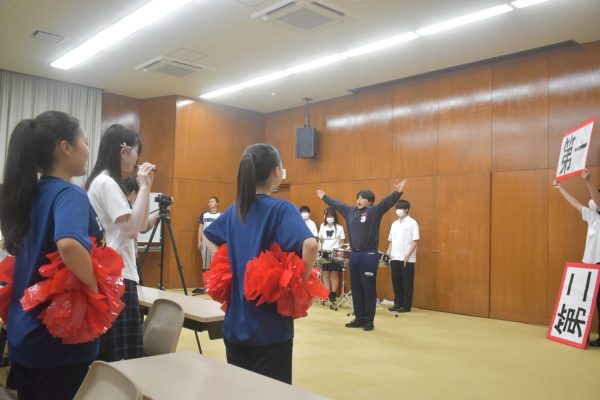本日、本校硬式野球部の応援に向け、チアダンス部・応援指導部・吹奏楽部・生徒会による合同応援練習が行われました。