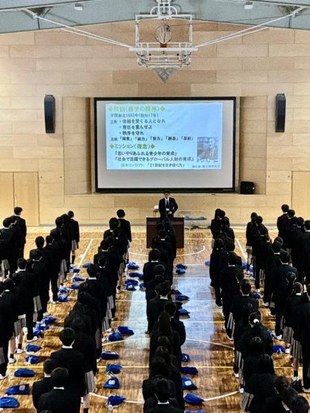 また、講話の中では、本校の教育の柱である三条五訓やミッション・ビジョンについても触れられました。