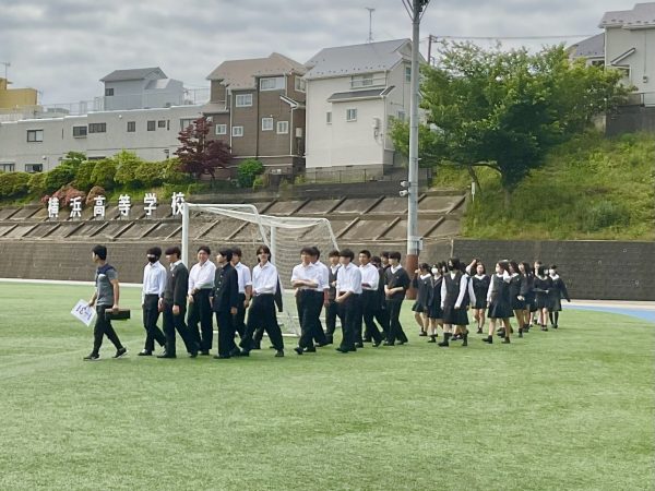 今回の訓練では、全クラスの点呼が13分30秒で終了しました。全校生徒2500名を超える中での防災訓練でしたが、担任の指示をよく聞き、迅速に行動することができました。