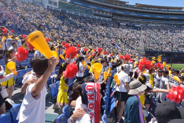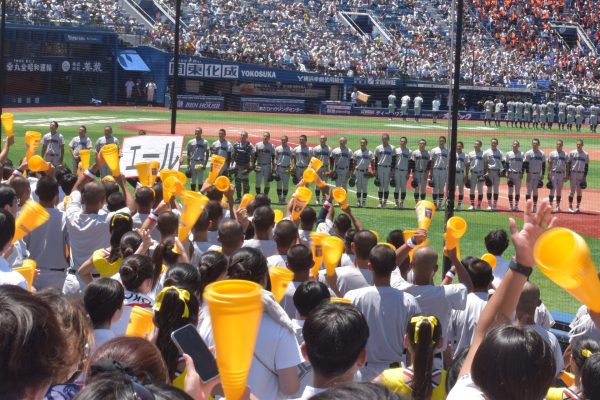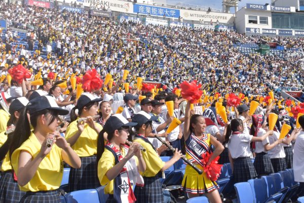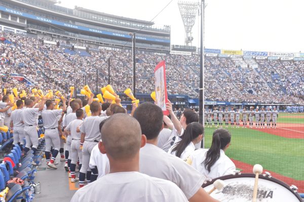 本校では準決勝と決勝は全校応援となっており、両日ともに多数の在校生が横浜スタジアムに駆け付け、硬式野球部を全力で応援しました。