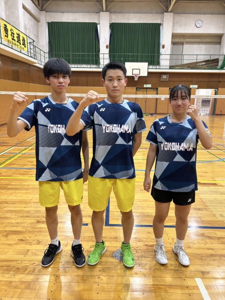 右から全国大会出場を決めた高野さん、原田くん、原田くんと全国でダブルスのペアを組む志村くん
