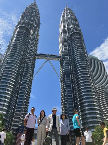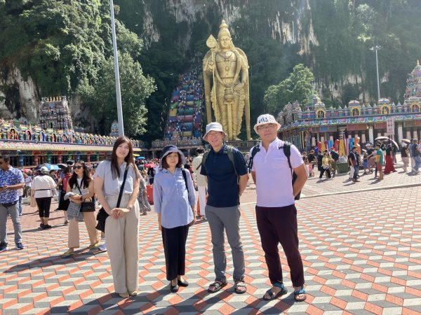 クアラルンプールにもたくさんの教育素材があります。「バトゥ洞窟」は、マレーシア国内でも最も有名なヒンドゥー教の聖地。、正面には高さ43mの黄金の神像、ヒンドゥー教の神様「ムルガン」が立ち、その左には「洞窟に入るための272段のカラフルな階段があります!」というガイドさんの説明を聞きました(つまり登りませんでした)。「ペトロナスツインタワー」のタワー1(写真右)は日本の建設会社ハザマが、タワー2(写真左)は韓国の建築会社サムスン物産建設部門と極東建設が施工したそうです。
